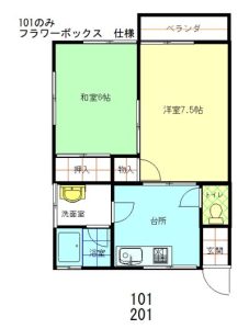 | 間取り詳細 | 和室6帖・洋室7.5帖・台所・洗面所・浴室・水洗トイレ |