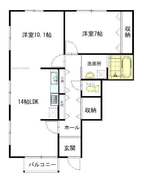 | 間取り詳細 | LDK14帖・洋室10.1帖・洋室7帖 |