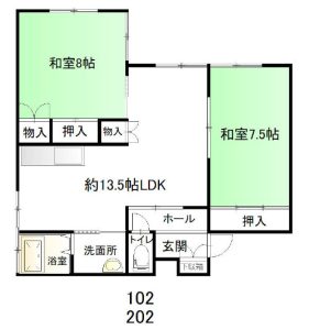 13.5帖LDK・和室7.5帖・和室8帖・洗面所・浴室・水洗トイレ